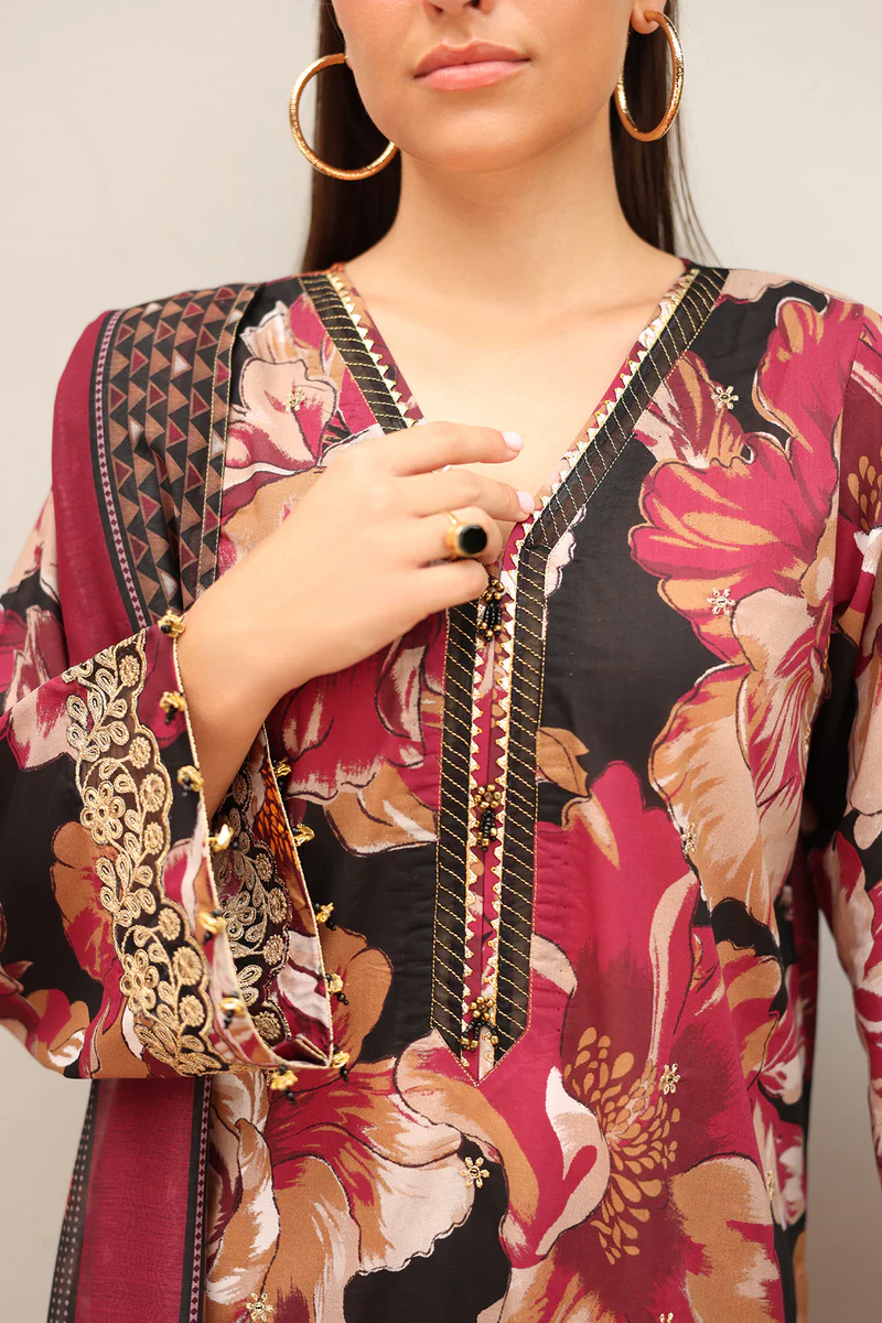 Baroque- Khadar Printed with Embroidery Patches 3pc