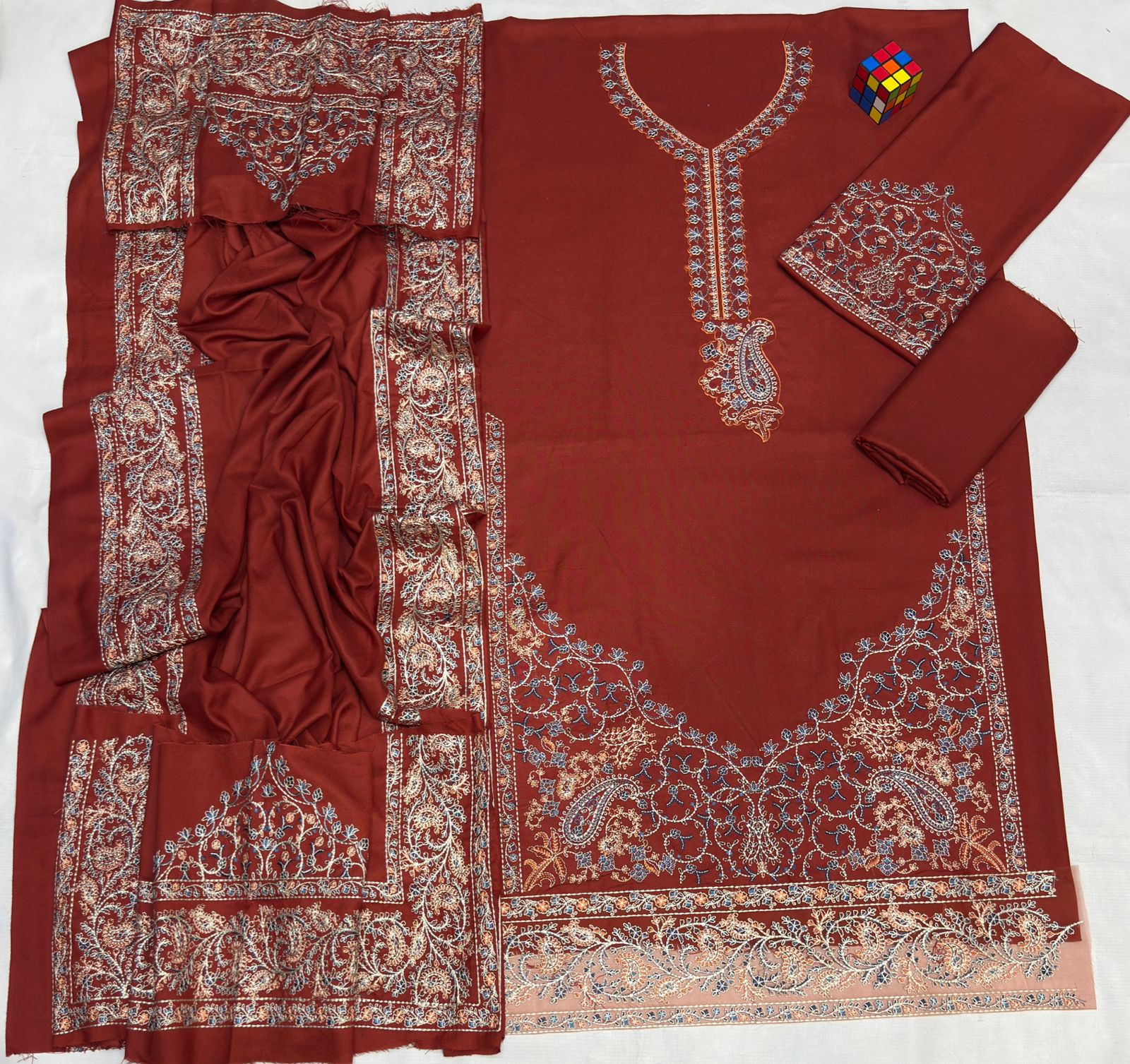 Check out the Dhanak Dress 3-piece set with an embroidered shawl from our winter collection! It’s a heavy embroidered suit that’s perfect for the season
