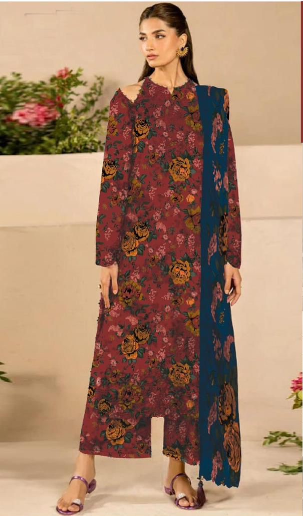 Digital Printed Linen 3PC , featuring premium fabric, elegant prints, and detailed embroidery—perfect for stylish winter wear and everyday elegance.