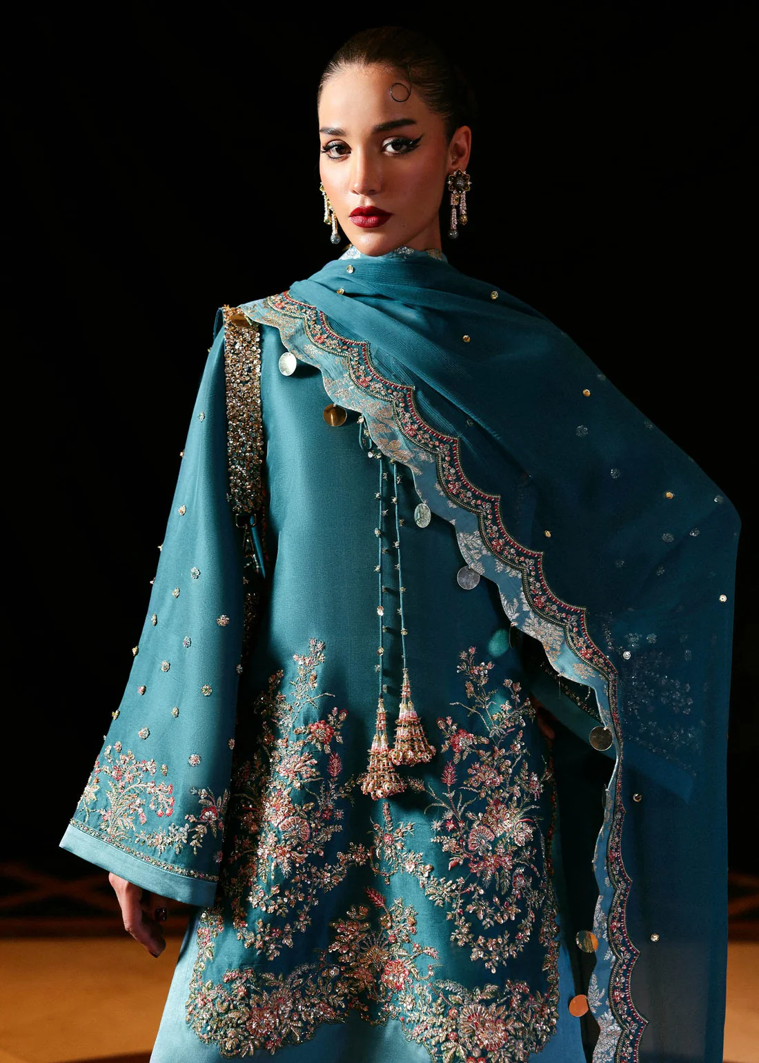 - Full heavy embroidered shawl ready to wear with fine quality.