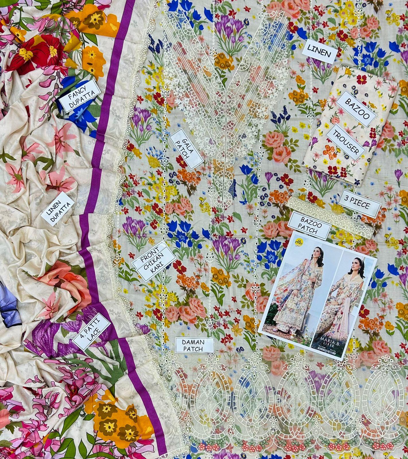 Shop the latest Maria B Embroidered Unstitched Linen 3pc Dress from the Winter 2025 collection. Featuring premium linen fabric with intricate embroidery and digital prints. Perfect for a sophisticated winter look. Order now for fast delivery!