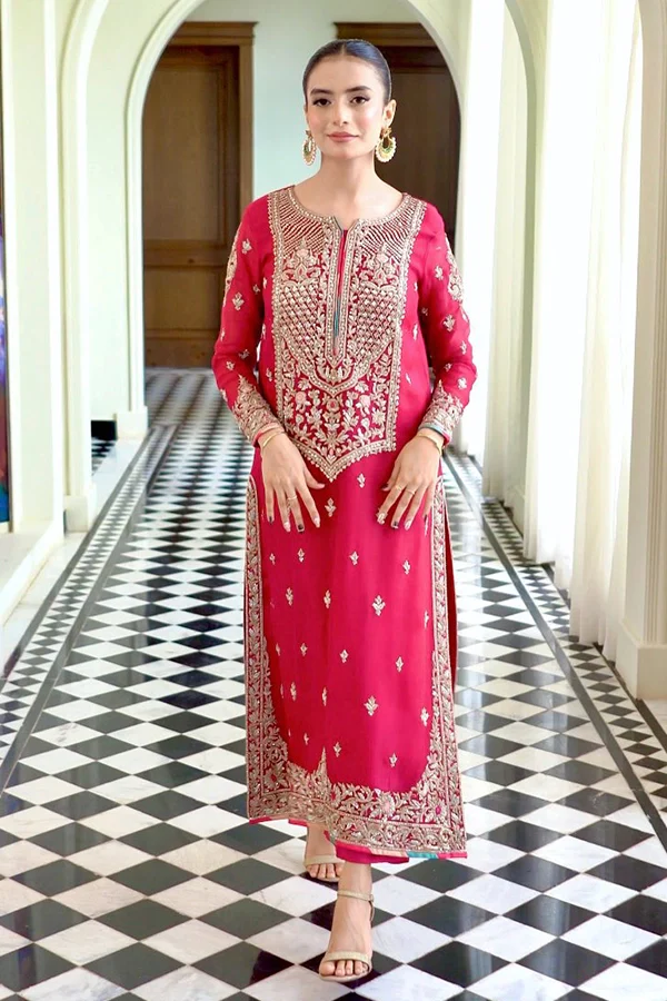 Waqar Asghar – Hot Pink Luxury Partywear 3pc Dress